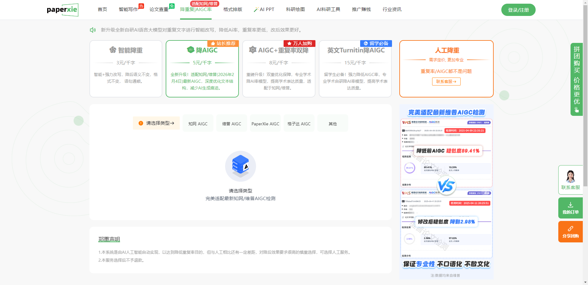 3. AIGC + 重复率双降:8 元 / 千字,全面优化论文质量