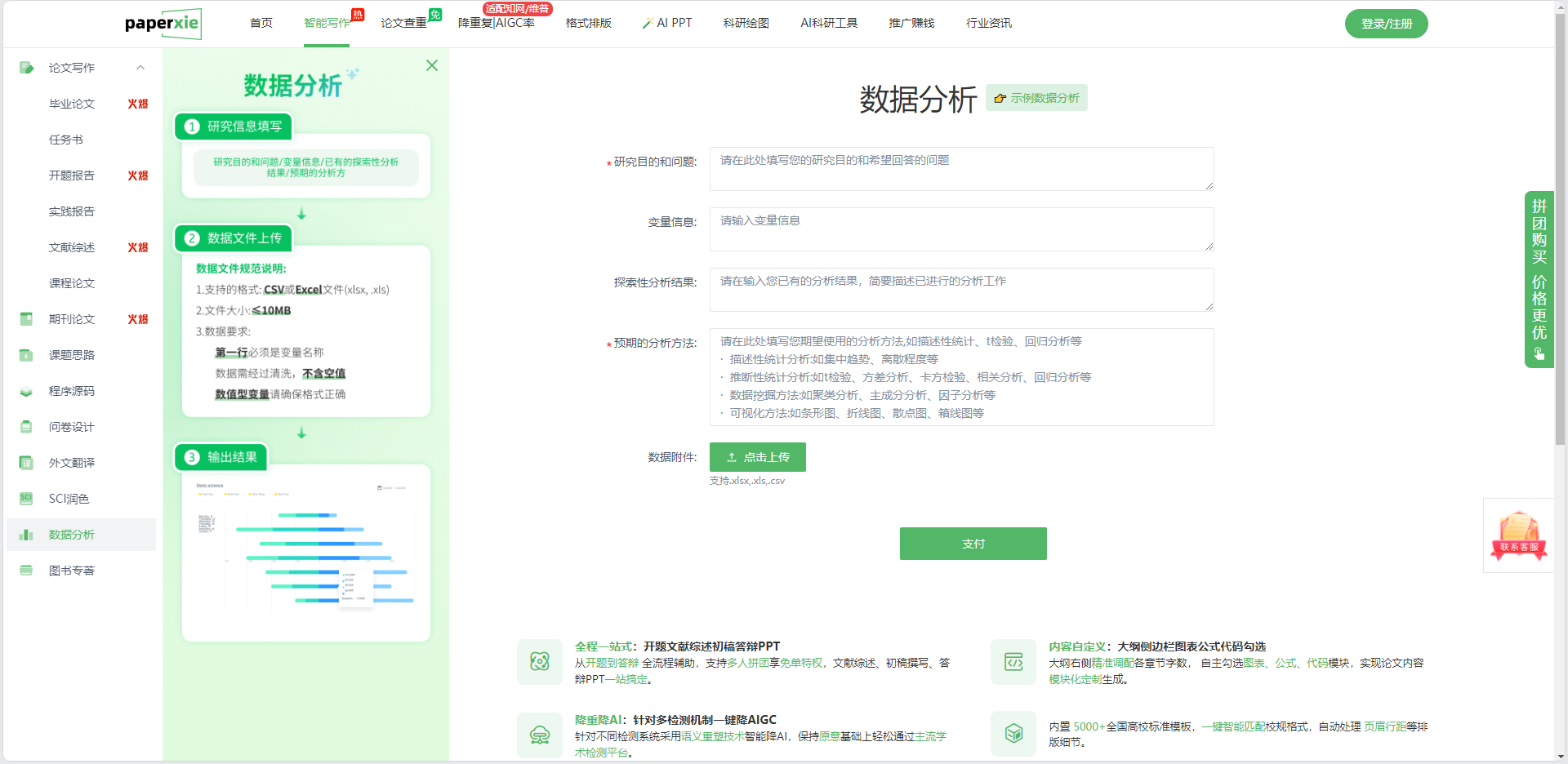 为了让大家更直观地了解 PaperXie 数据分析功能的操作流程,我们结合官网界面,详细介绍其核心步骤: