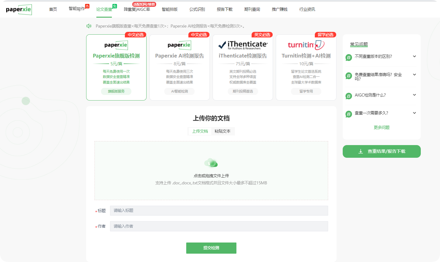 登录 paperxie 官网,用户可将论文上传至平台,选择免费降重选项,平台会生成详细降重报告,清晰展示修改内容、重复来源及修改依据。也可上传 AIGC 检测报告或论文原文,利用相关功能,让系统自动识别并处理可能被识别为 AI 生成的内容。