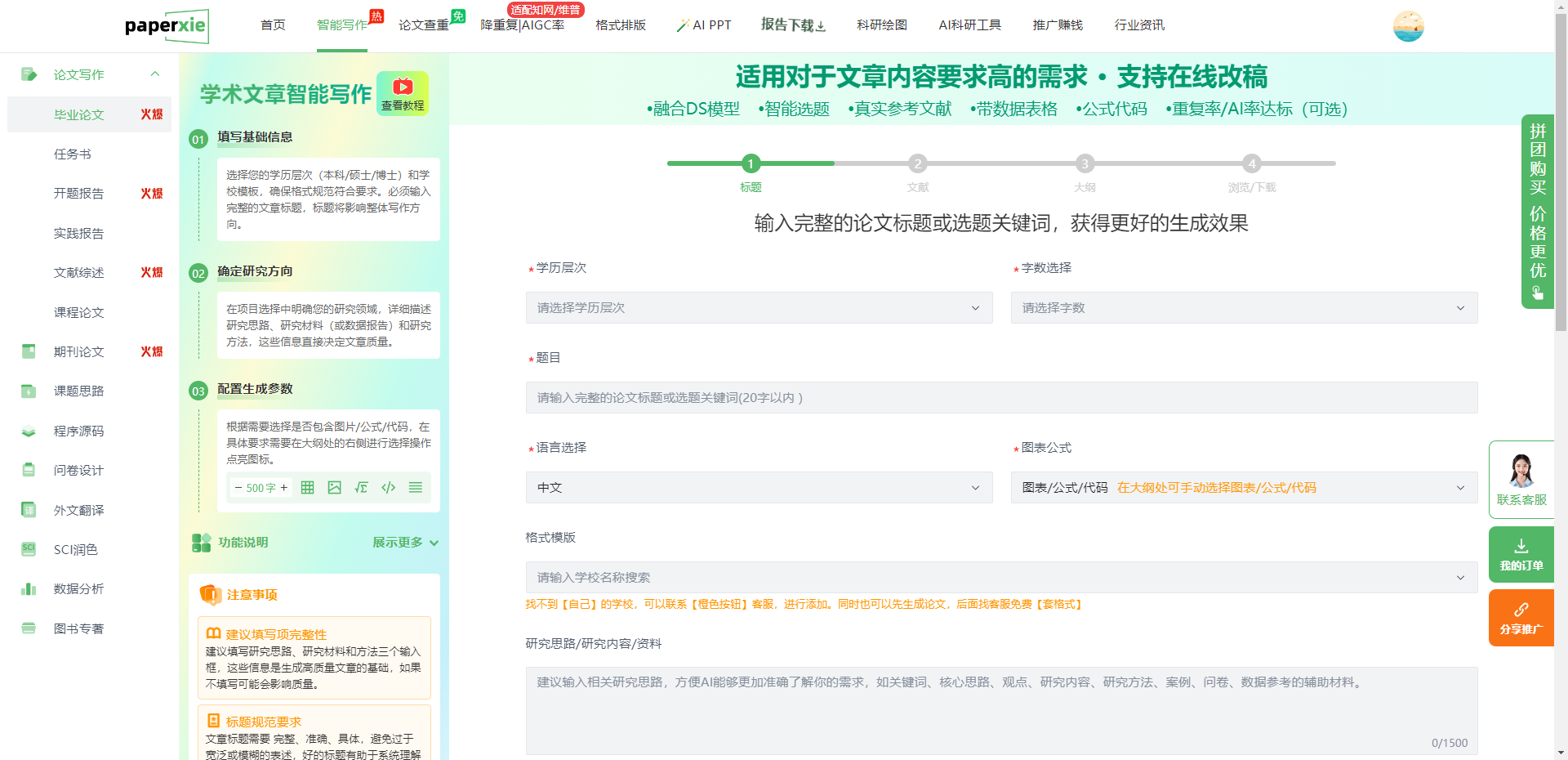 - 一站式解决初稿、绘图、排版、降重四大核心痛点,无需多工具切换;