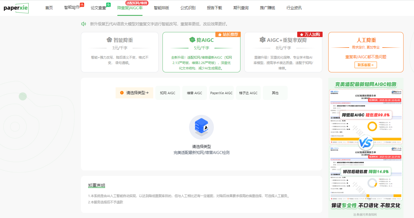 登录 PaperXie 官网,将论文上传至平台,选择免费降重选项,也可上传 AIGC 检测报告或论文原文,利用平台的降 AIGC 功能,让系统自动识别并处理相关内容。平台会生成详细的降重降 AI 报告,清晰展示修改内容、重复及 AI 来源情况以及修改依据。